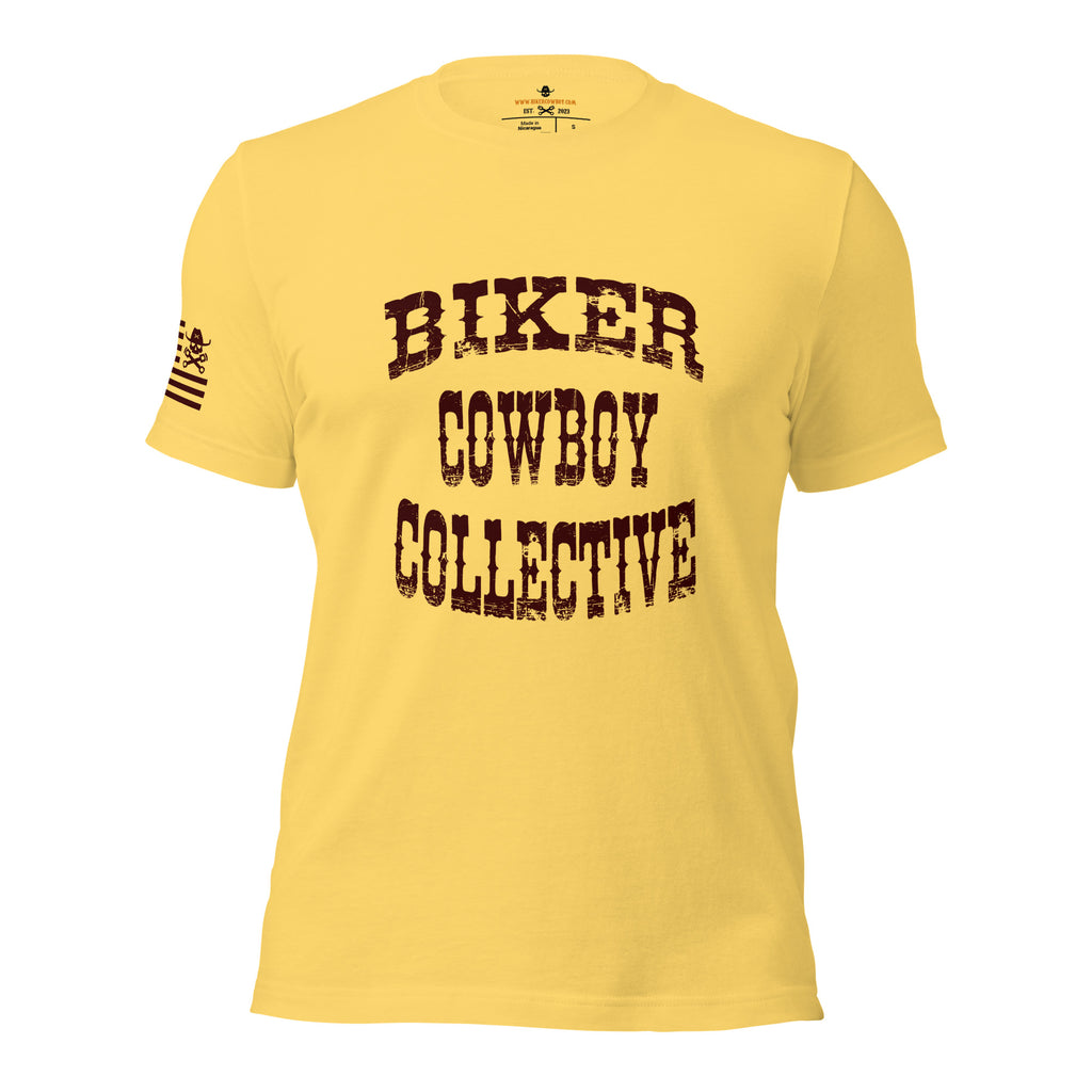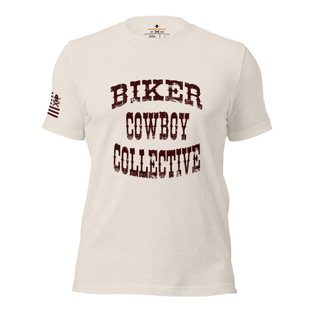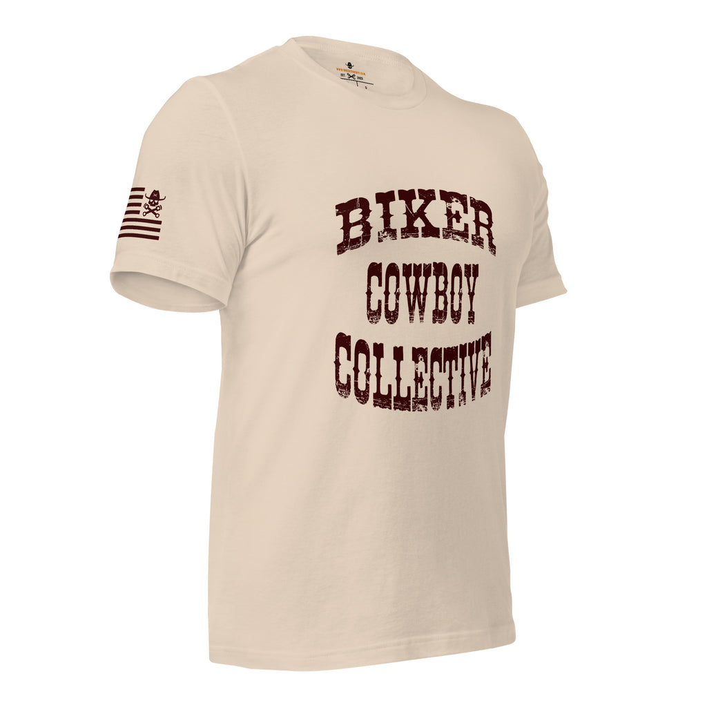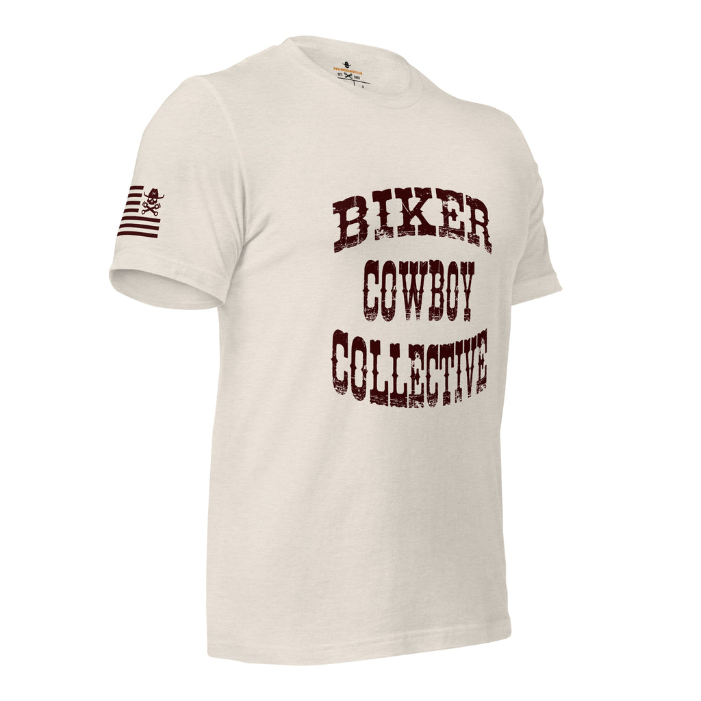 BIKER COWBOY COLLECTIVE 23'. A THROWBACK THAT'S RECENT. his t-shirt is everything you've dreamed of and more. It feels soft and lightweight, with the right amount of stretch. Bella+Canvas 3001, just like all our T-shirts.