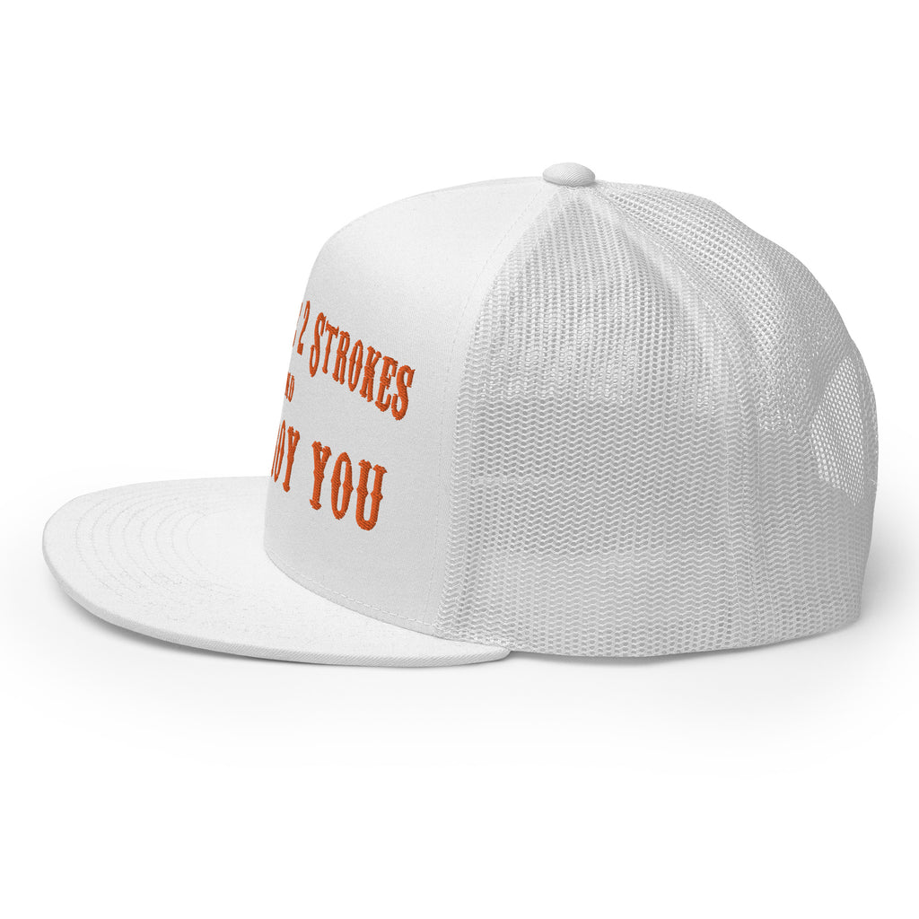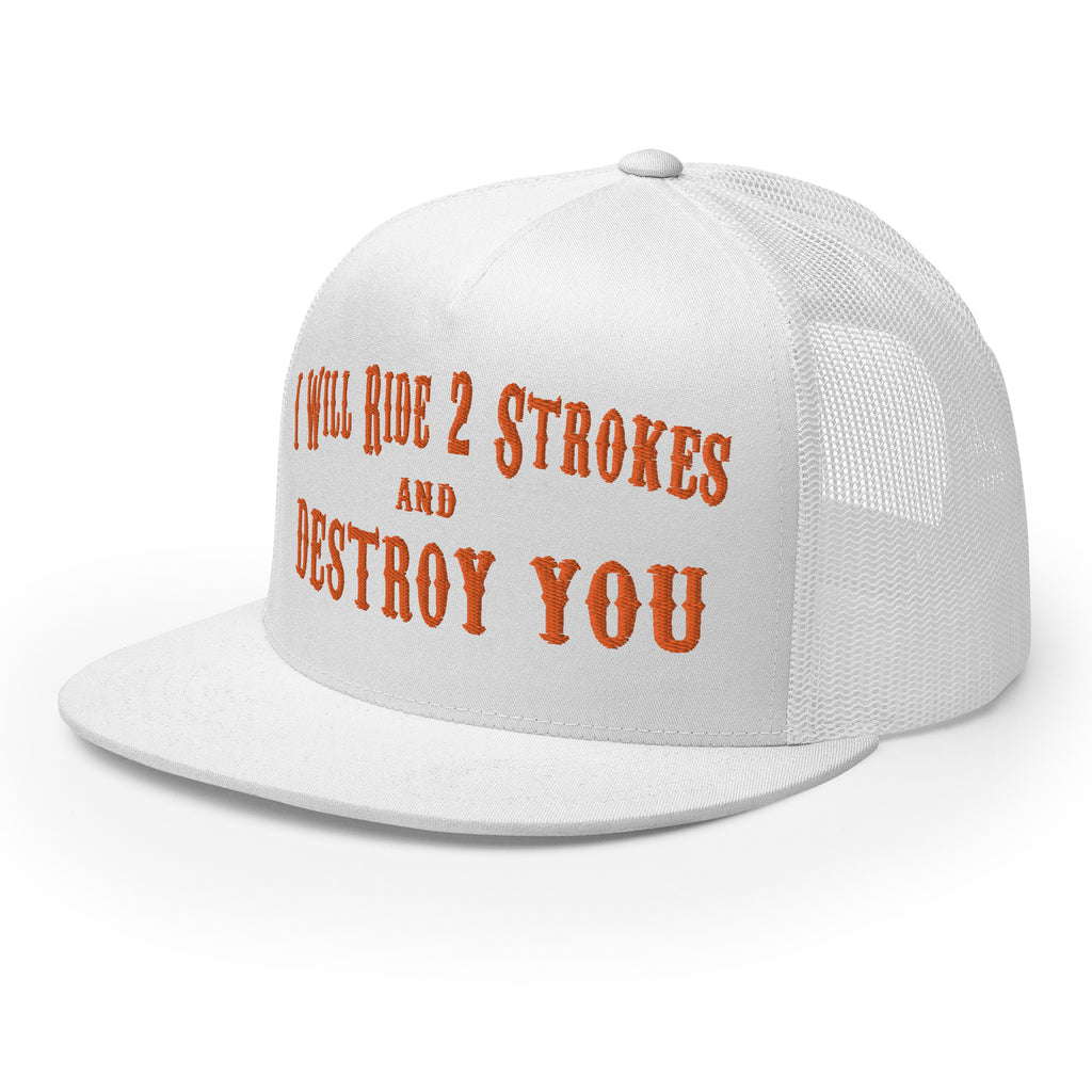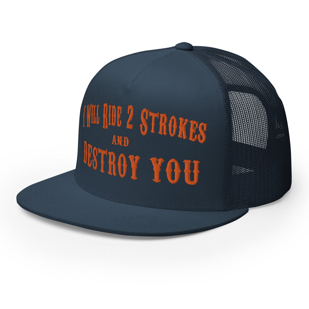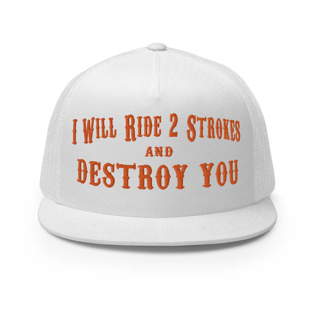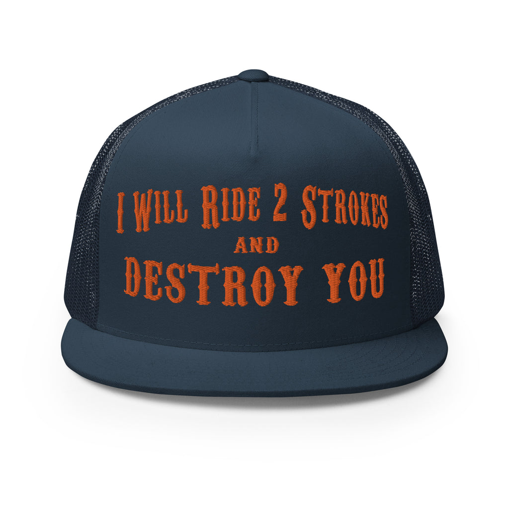 I WILL RIDE 2 STROKES AND DESTROY YOU 3D PUFF EMBROIDERED TRUCKER HAT