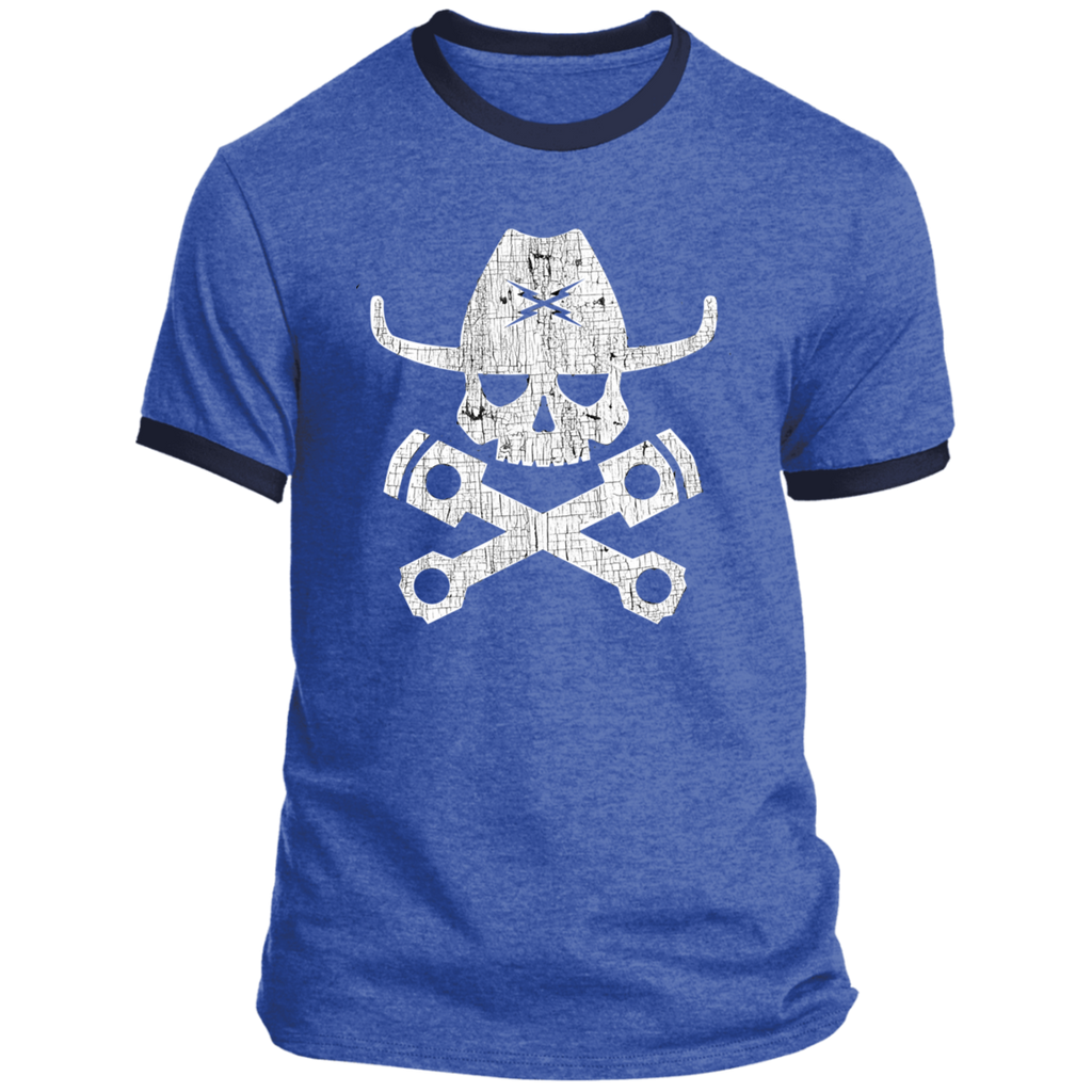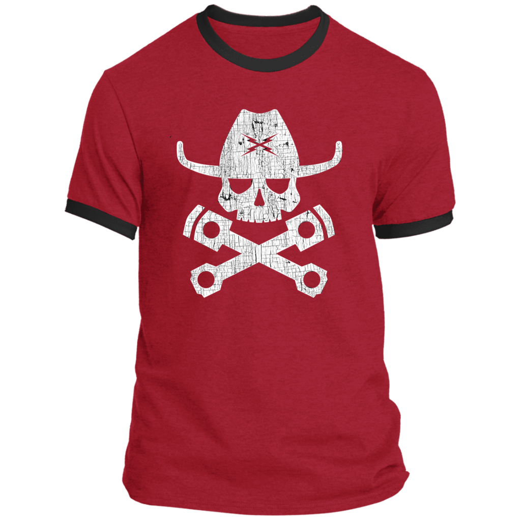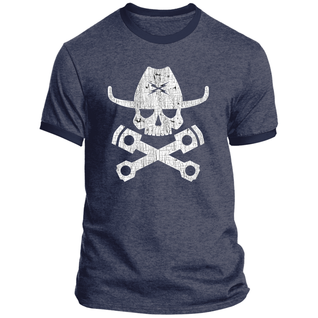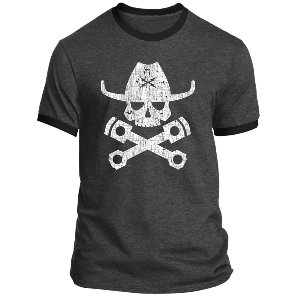 BIKER COWBOY LOGO. CRACKED DISTRESSED LOOK. CLASSIC RINGER T.
